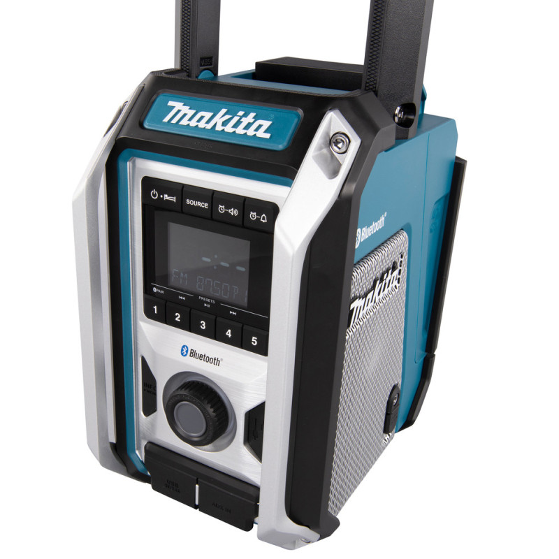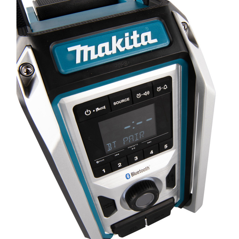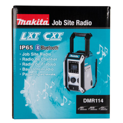 Radio do słuchania w miejscu pracy z klasyfikacją izolacji obudowy IP65. Zasilany akumulatorami CXT® 12V max, 14,4V i LXT® 18V oraz sieciowo. Funkcjsa Bluetooth umożliwia połączenie z odtwarzaczem muzyki. Jakość dżwięku można ustawić w 7 różnych pozycjach w zależności od słuchanej muzyki. Wyposażony w łącze AUX i USB do ładowania telefonu.