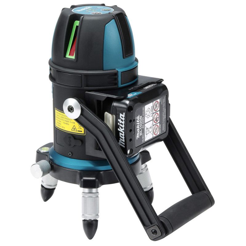 Akumulatorowy, samopoziomujący laser wielowiązkowy (zielony) zasilany akumulatorami 12 V max. Wyświetla trzy pełne linie laserowe w zakresie 360° (poziome i pionowe). Laser jest odporny na pył i lekki deszcz, z klasą izolacji IP54. Z funkcją pamięci zapamiętującą ostatnie ustawienie przed wyłączeniem urządzenia. Współpracuje również z bateriami 8 x AA przy użyciu adaptera (ADP09).