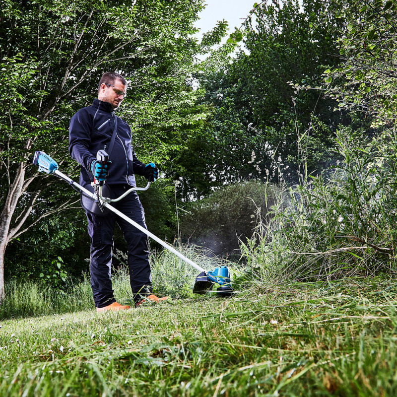 Mocna podkaszarka z wygodnym, asymetrycznym uchwytem typu kierownica z włącznikiem spustowym do przycinania trawy i wykańczania terenów zielonych. Zaopatrzona w automatyczny dobór prędkości w zależności od obciążenia. Niski poziom wibracji i hałasu oraz dobra ergonomia sprawiają, że narzędzie jest idealnym do prac ogrodowych.